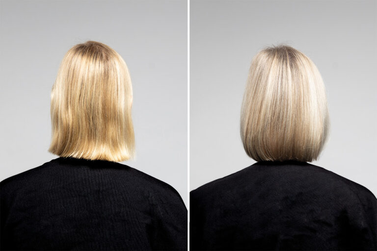 Poröse Längen und sensible Spitzen reagieren besonders schnell auf Hitze, Feuchtigkeitsverlust und mechanische Belastung. Die Folge: Glanz geht verloren, das Blond wirkt stumpf, obwohl die Farbe eigentlich perfekt angelegt ist. Mit der ICE BLOND Serie haben wir bereits einen klaren Fokus gesetzt: die Pflege von blondem, weißem und grauem Haar so auszurichten, dass kühle Nuancen erhalten bleiben und unerwünschte warme Reflexe zuverlässig neutralisiert werden. Shampoo und Maske sind dabei feste Größen im Pflegeritual geworden – im Salon wie auch zu Hause. Mit dem ICE BLOND Fluid führen wir dieses Konzept nun konsequent einen Schritt weiter.